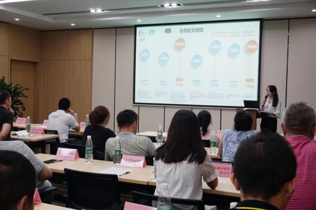 办公室主任王艳分别对会费收支明细、活动收支明细、日常运营收支明细、秘书处财务收支情况进行汇报。同时,川数联和成云盟热心公益,投身扶贫攻坚工作,捐款捐物,招聘1名残友入职,解决残友就业困难等工作成绩进行汇报。