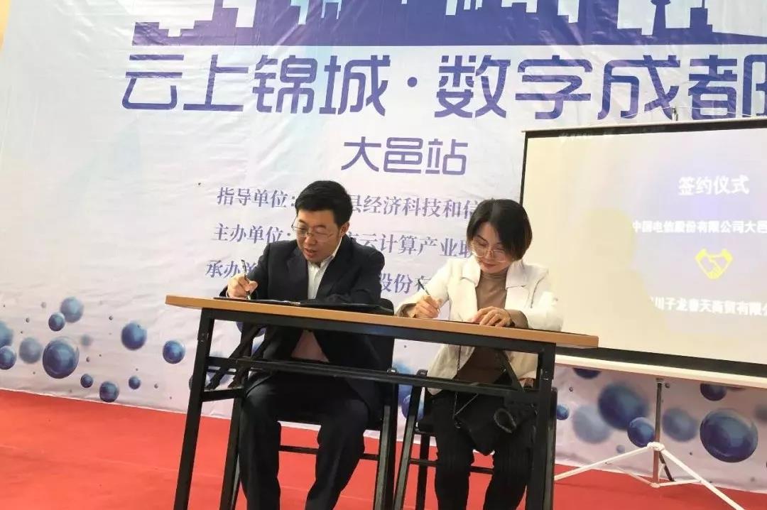 中国电信天翼云立足于云网融合、安全可信两个基本点,为企业客户提供专属的、贴心的云服务,提供定制化的解决方案,以及端到端的全流程服务,以此作为契机,中国电信股份有限公司大邑分公司与四川子龙春天商贸有限公司在现场进行了签约仪式。至此,云上锦城·数字成都—大邑站活动圆满结束。