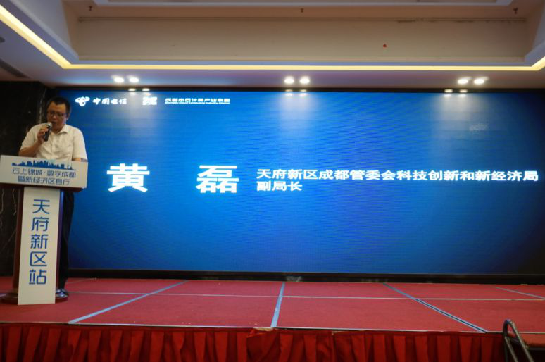 活动伊始,天府新区成都管委会科技创新和新经济局副局长黄磊、中国电信股份有限公司天府新区分公司副总经理谷上宇为本次活动发表了致辞演讲。