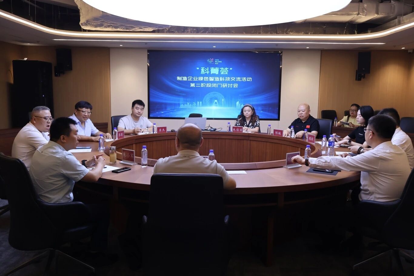 上午11时许,活动进入闭门研讨环节。约15位区县科协领导、园区和企业负责人与制造业智改数转领域专家围绕“立园满园”“智改数转”等市委市政府经济和科技大局方向展开研讨,聚焦制造业转型中“转型难、转型贵”的痛点问题和绿色可持续发展的理念,就“数据驱动生产优化”等议题深入交流,形成多项针对性建议,为后续项目合作奠定基础。