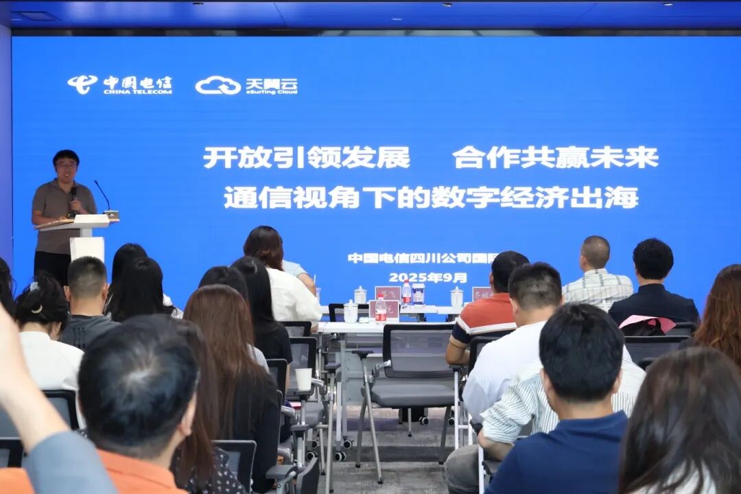 中国电信四川公司国际部总经理廖力钢围绕“开放引领发展 合作共赢未来——通信视角下的数字经济出海”展开分享。他详细介绍了中国电信的全球海陆缆资源、海外节点布局以及“全球一张网”服务能力,通过SD-WAN、云网融合、数据中心等解决方案,为数字出海提供坚实的信息基础设施。