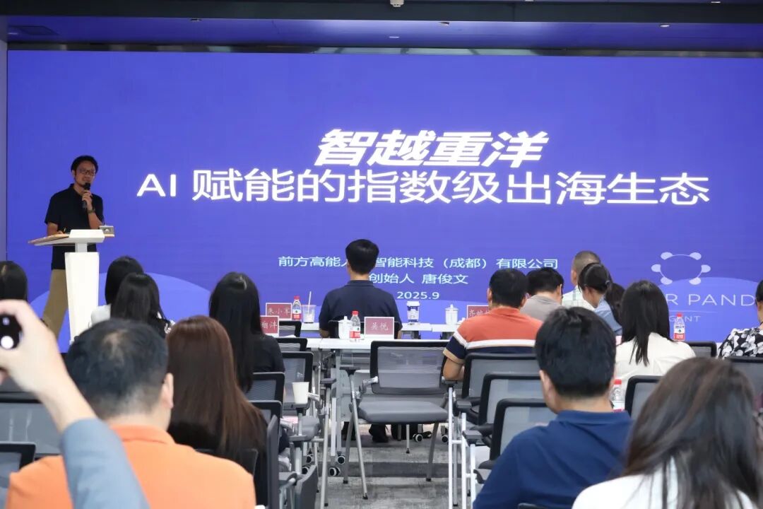 前方高能人工智能科技(成都)有限公司总经理唐俊文在《智越重洋:AI赋能的指数级出海生态》分享中,展示了AI技术如何重塑出海模式。他提出,传统出海方式高成本、效果难评估,而通过AI视频工厂、多语言官网搭建、全球媒体矩阵等工具,企业可实现全球化营销和社媒驱动获客,为成都AI企业出海提供可复制的“技术+生态”模式。