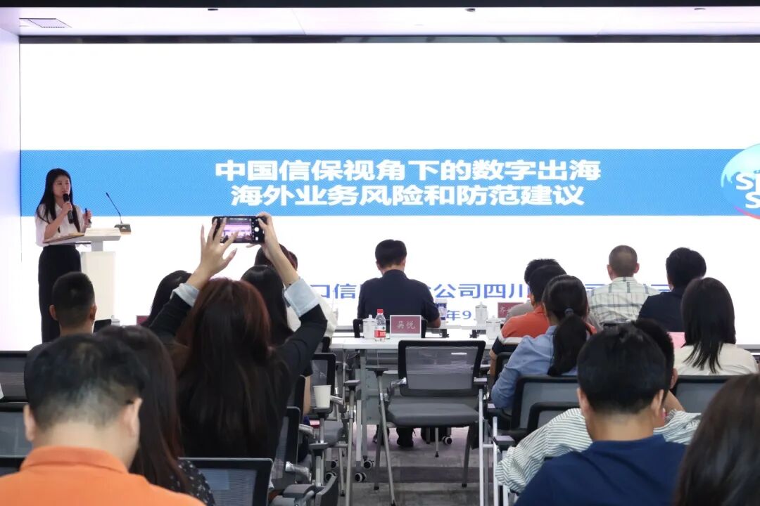 中国信保四川分公司资深承保人刘云聚焦于《中国信保视角下的数字出海海外业务风险和防范建议》。她系统梳理了企业出海面临的政治、经济、法律、运营、收汇等多维风险,并重点介绍了中国信保在软件、保单融资等方面服务,为企业提供全流程风险管理和融资支持,助力企业“走得出、走得稳”。