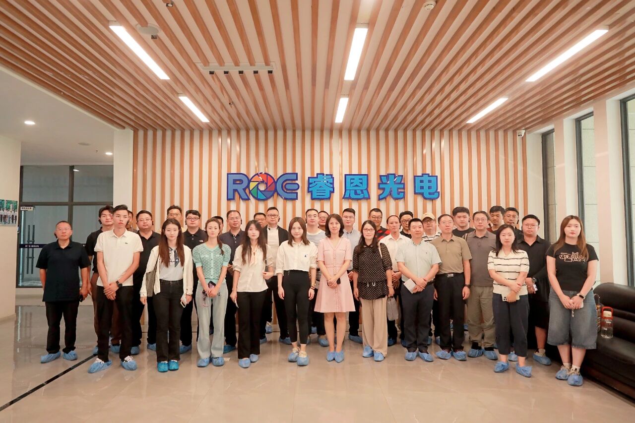 在睿恩光电有限责任公司,考察团近距离观摩光电产品智能化生产线,详细了解企业如何借助数字技术优化生产流程、提升精度与效率,对其在技术研发和数字化转型上的突破成果给予高度评价。